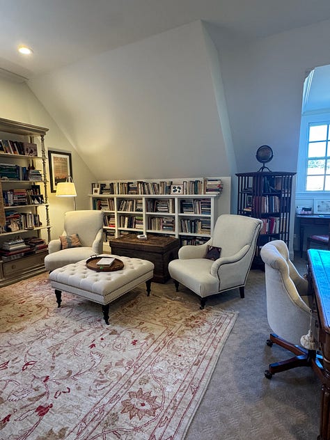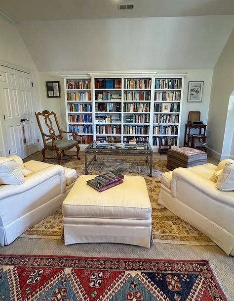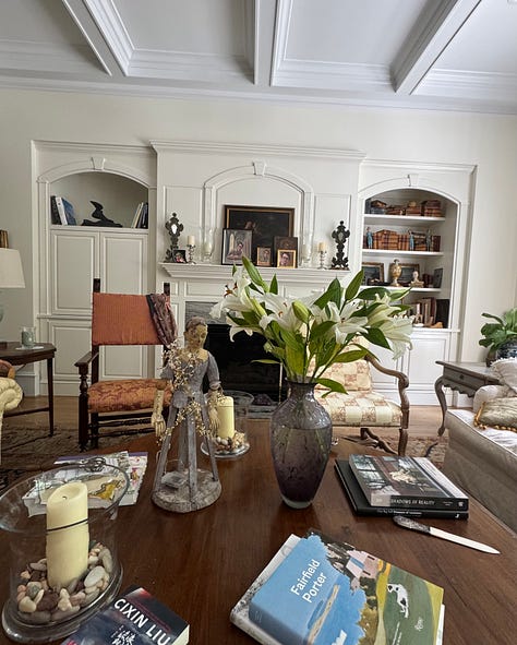 As for us, this decision to move has opens a big door. We decided to give away a lot of furniture, to winnow down the attic storage—furniture that needs reupholstering and will never get it, tax records long yellowed, heavy cumbersome suitcases, etc. Although I am not a believer in “death cleaning,” it’s good to stay lean. As for things I love, I’m not sacrificing to the idea that when you’re older you should downgrade to strict minimalism. Freeing for some, but not for me. I like my books, paintings, china, silver, and antiques shipped home from Italy. Minimalism holds no appeal.
