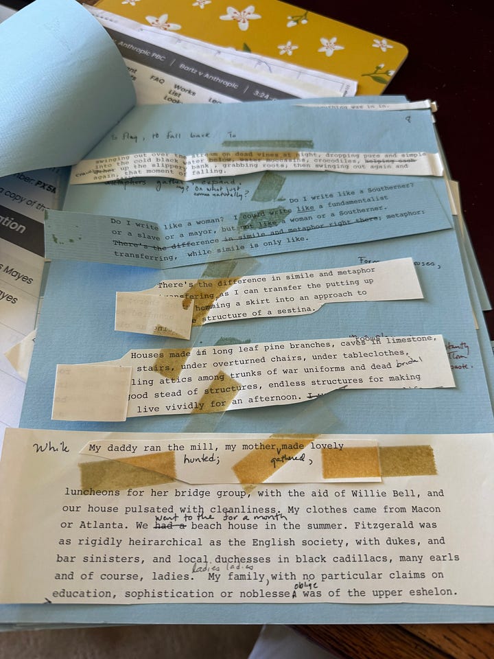 As I waded through my own manuscripts and notebooks, I had a further jolt. My entire way of working has changed, I guess so gradually that I hadn’t noticed. Revising and cutting and taping became digital. Writing used to be more tactile. From several journals, pressed leaves and flowers fell out, along with grocery lists, and bookmarks made by my grandson. What is lost in the maneuvers on the white screen?